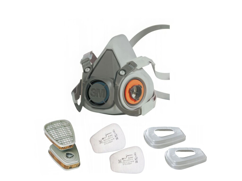 Maska 3M 6300 ve velké velikosti L je dodávána včetně kompletního příslušenství:
