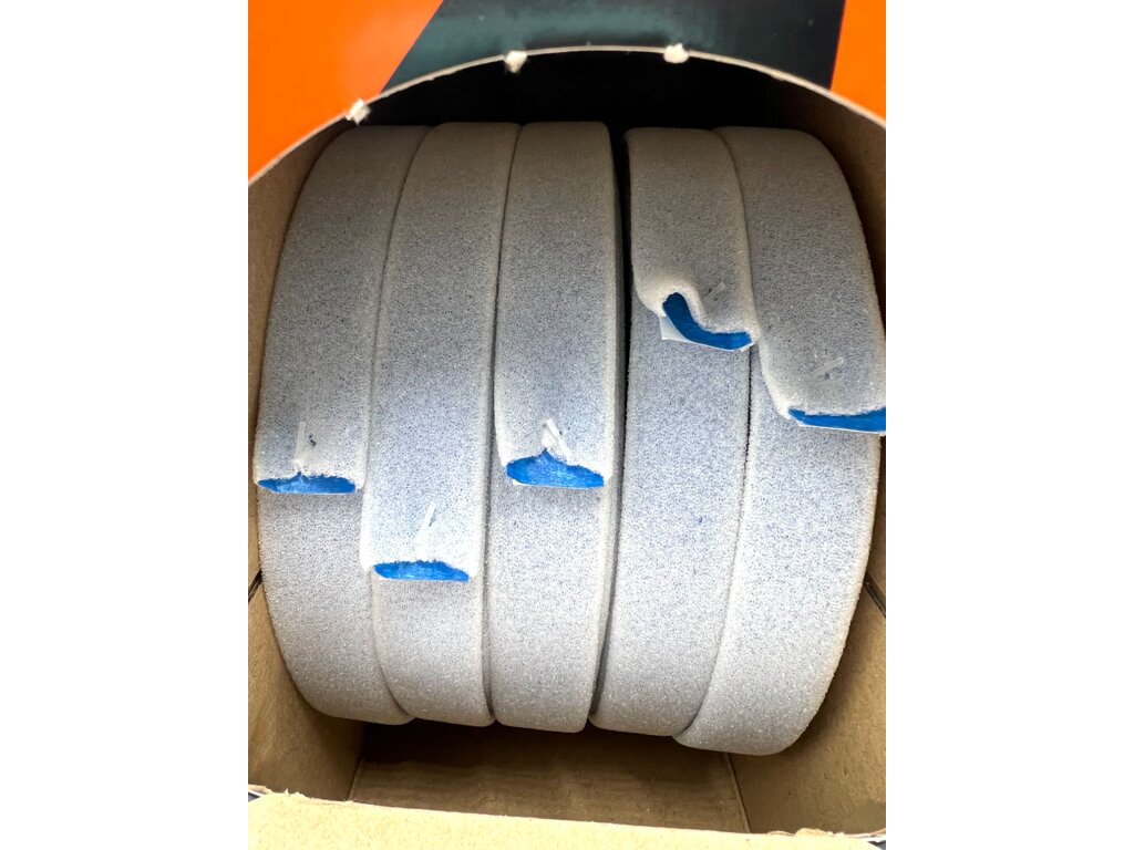 Kombinace maskovací a pěnové pásky se vzdušnou dutinkou. Díky tlaku vzduchu během procesu lakování se pěnová páska třepe, což ve výsledku znamená, že je materiál měkký a tenký na okraji.