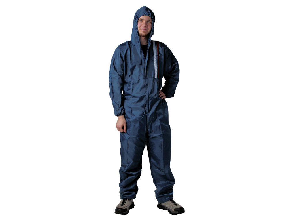 Oblek má kapuci pro ochranu hlavy a vlasů. Široké nohavice, díky kterým se pohodlně obléknete a svléknete i s nazutou obuví. Zapíná se na zip.