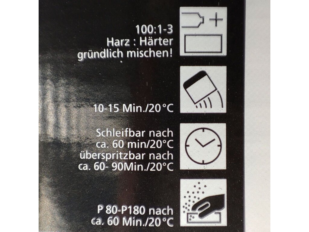 Povrch by měl být zbaven mastnoty, čistý a suchý a nahrubo vybroušený. Pokud je povrch rezavý, je potřeba ještě odrezit. Sadu lze zpracovávat při teplotě od +5°C (při nižší teplotě polyesterová pryskyřice nevytvrdne). Ideální teplota pro zpracování je mezi +15°C až 25°C. Při teplotě cca +20°C je pryskyřice vytvrzená po 30 - 60min. Poté ji lze brousit brusným papírem o zrnitosti P60 - P80. Míchací poměr je 100:1-3.