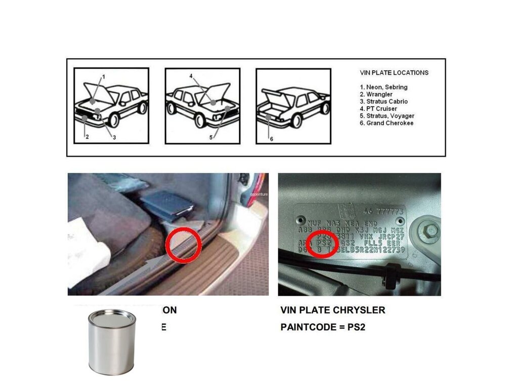 Může se stát, že z nějakého důvodu štítek s barvou chybí, v tom případě stačí, pokud se telefonicky obrátíte na libovolného prodejce nebo autorizovaný servis Chrysler, kde Vám zdarma podle čísla VIN kód barvy sdělí.