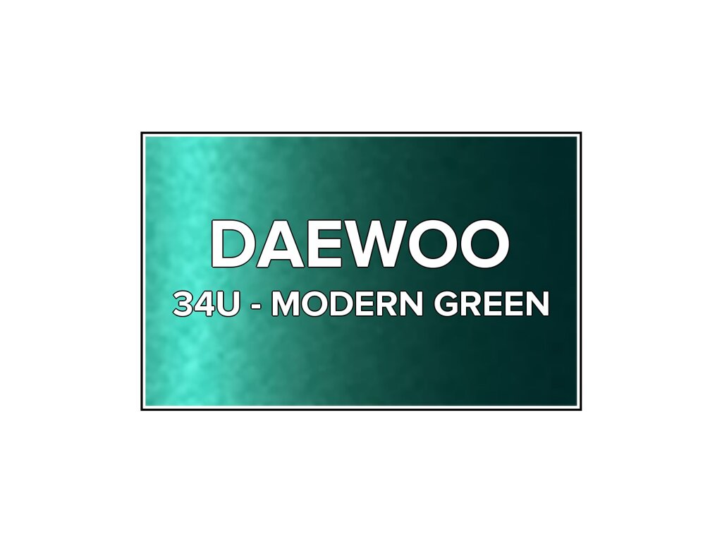 Přečíst článekZelená metalíza Daewoo 34U Modern Green do pistole v balení o objemu 100ml. Barva MODERN GREEN přesně odpovídá autolaku 34U, používaného na vozech Daewoo v letech 2002-2005. Barva na všechny povrchy, snadná aplikace, 100% krytí.