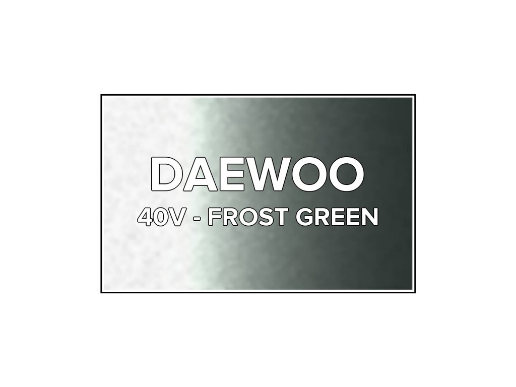 Přečíst článekZelená metalíza Daewoo 40V Frost Green do pistole v balení o objemu 100ml. Barva FROST GREEN přesně odpovídá autolaku 40V, používaného na vozech Daewoo v letech 2001-2005. Barva na všechny povrchy, snadná aplikace, 100% krytí.