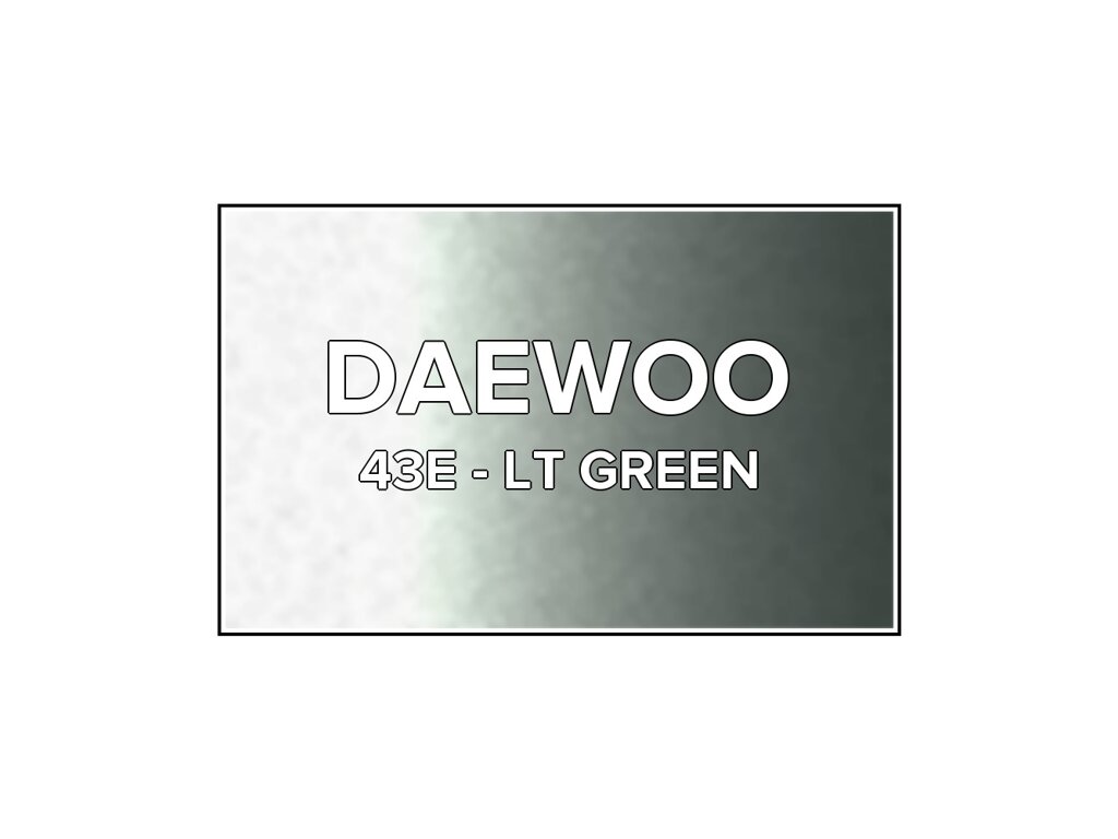 Přečíst článekZelená metalíza Daewoo 43E Lt Green do pistole v balení o objemu 100ml. Barva LT GREEN přesně odpovídá autolaku 43E, používaného na vozech Daewoo v letech 1991-1998. Barva na všechny povrchy, snadná aplikace, 100% krytí.