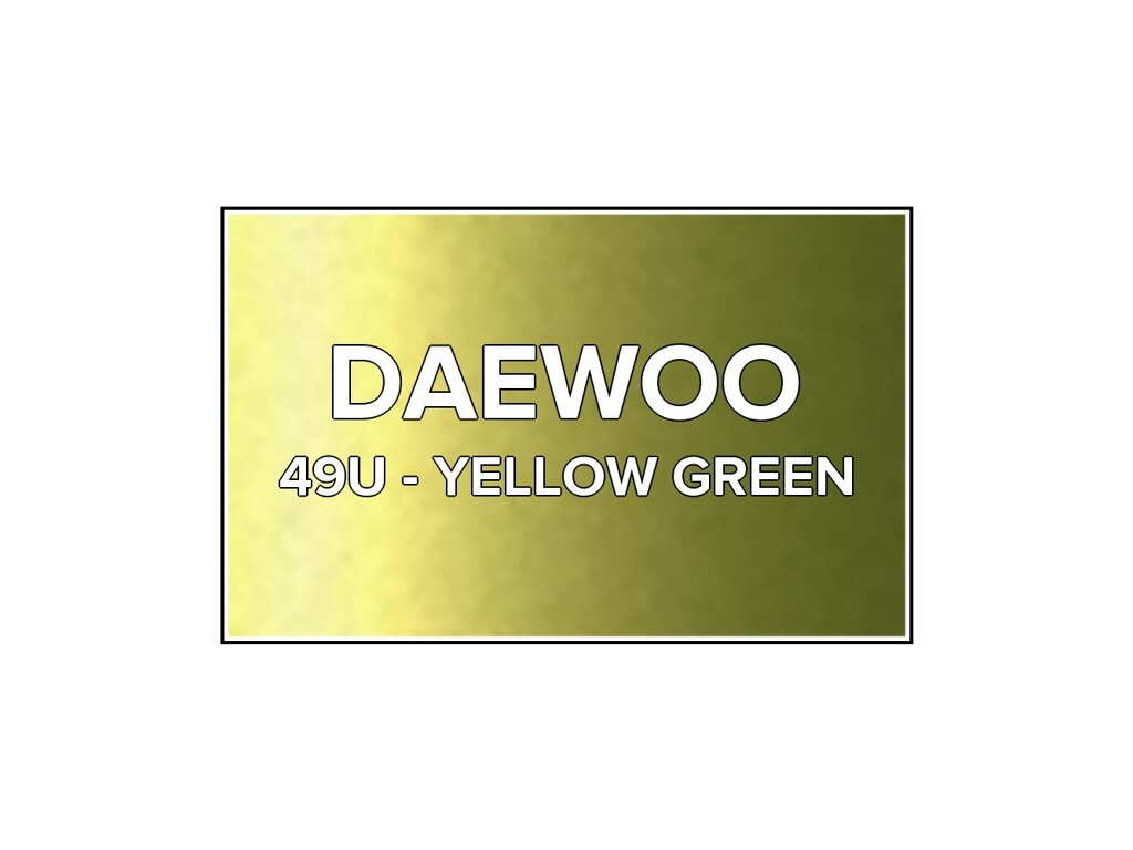 Přečíst článekZelená metalíza Daewoo 49U Yellow Green do pistole v balení o objemu 100ml. Barva YELLOW GREEN přesně odpovídá autolaku 49U, používaného na vozech Daewoo v letech 2001-2006. Barva na všechny povrchy, snadná aplikace, 100% krytí.