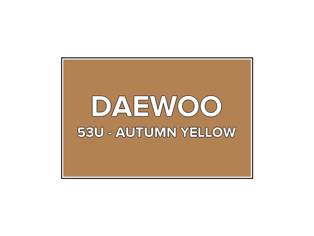 Přečíst článekŽlutá barva Daewoo 53U Autumn Yellow do pistole v balení o objemu 100ml. Barva AUTUMN YELLOW přesně odpovídá autolaku 53U, používaného na vozech Daewoo v letech 1998-2002. Barva na všechny povrchy, snadná aplikace, 100% krytí.