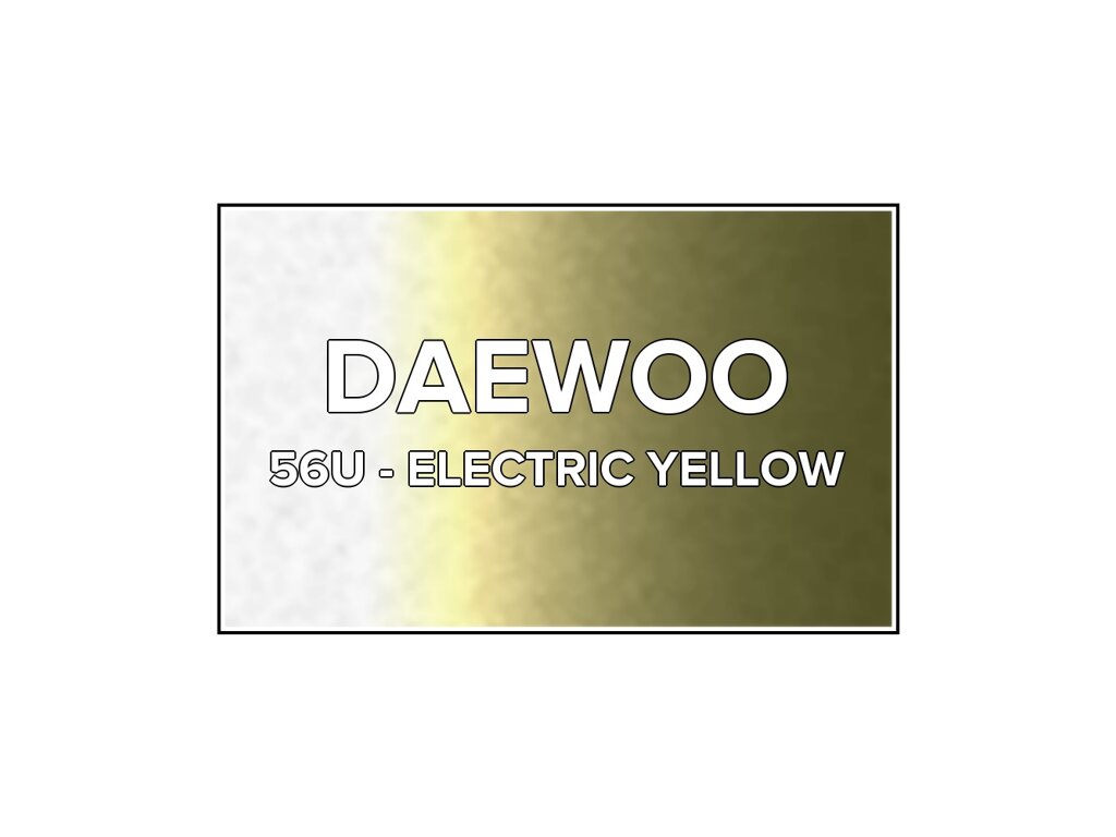 Přečíst článekŽlutá metalíza Daewoo 56U Electric Yellow do pistole v balení o objemu 100ml. Barva ELECTRIC YELLOW přesně odpovídá autolaku 56U, používaného na vozech Daewoo v letech 2000-2007. Barva na všechny povrchy, snadná aplikace, 100% krytí.