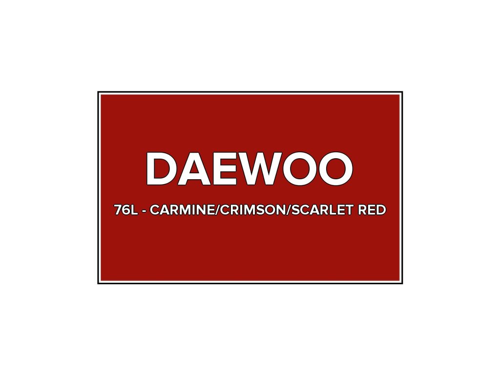Přečíst článekČervená barva Daewoo 76L Carmine/crimson/scarlet Red do pistole v balení o objemu 100ml. Barva CARMINE/CRIMSON/SCARLET RED přesně odpovídá autolaku 76L, používaného na vozech Daewoo v letech 1990-2008. Barva na všechny povrchy, snadná aplikace