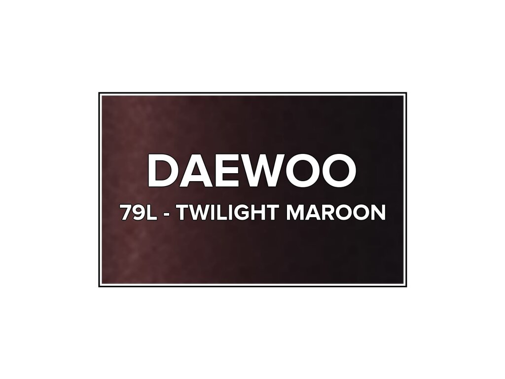 Přečíst článekHnědá metalíza Daewoo 79L Twilight Maroon do pistole v balení o objemu 100ml. Barva TWILIGHT MAROON přesně odpovídá autolaku 79L, používaného na vozech Daewoo v letech 1994-1997. Barva na všechny povrchy, snadná aplikace, 100% krytí.