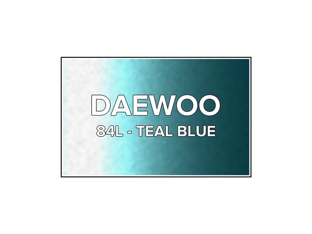 Přečíst článekModrá metalíza Daewoo 84L Teal Blue do pistole v balení o objemu 100ml. Barva TEAL BLUE přesně odpovídá autolaku 84L, používaného na vozech Daewoo v letech 1995-2007. Barva na všechny povrchy, snadná aplikace, 100% krytí.