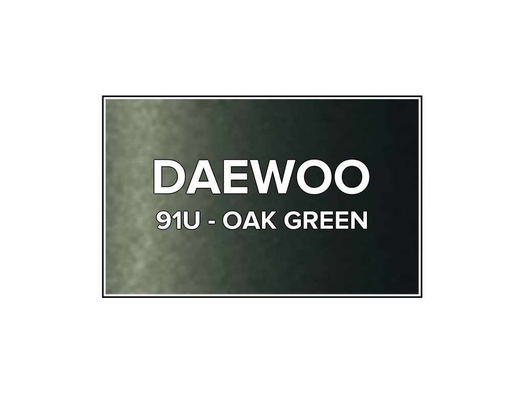Přečíst článekZelená metalíza Daewoo 91U Oak Green do pistole v balení o objemu 100ml. Barva OAK GREEN přesně odpovídá autolaku 91U, používaného na vozech Daewoo v letech 1999-2007. Barva na všechny povrchy, snadná aplikace, 100% krytí.
