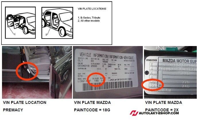 Může se stát, že z nějakého důvodu štítek s barvou chybí, v tom případě stačí, pokud se telefonicky obrátíte na libovolného prodejce nebo autorizovaný servis MAZDA, kde Vám zdarma podle čísla VIN kód barvy sdělí.