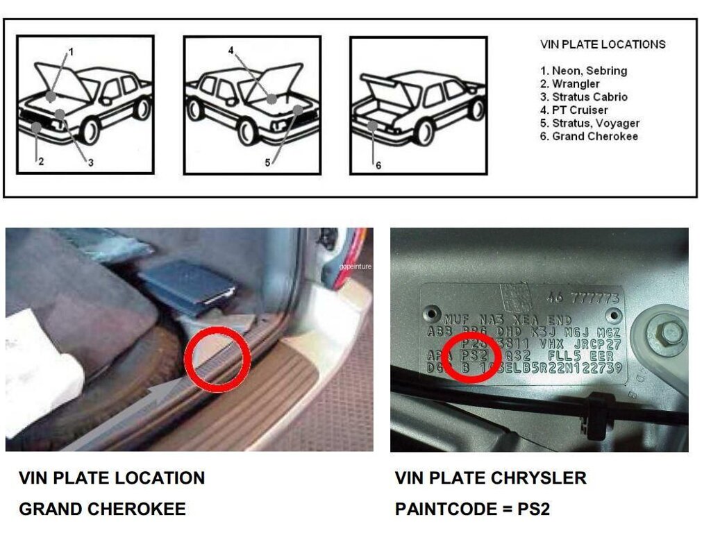 Může se stát, že z nějakého důvodu štítek s barvou chybí, v tom případě stačí, pokud se telefonicky obrátíte na libovolného prodejce nebo autorizovaný servis Chrysler, kde Vám zdarma podle čísla VIN kód barvy sdělí.