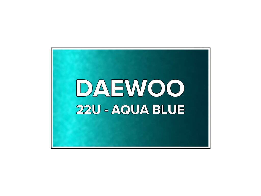 Přečíst článekZelená metalíza Daewoo 22U Aqua Blue ve spreji o objemu 400ml. Barva AQUA BLUE přesně odpovídá autolaku 22U, používaného na vozech Daewoo v letech 1999-2003. Barva na všechny povrchy, snadná aplikace, 100% krytí.