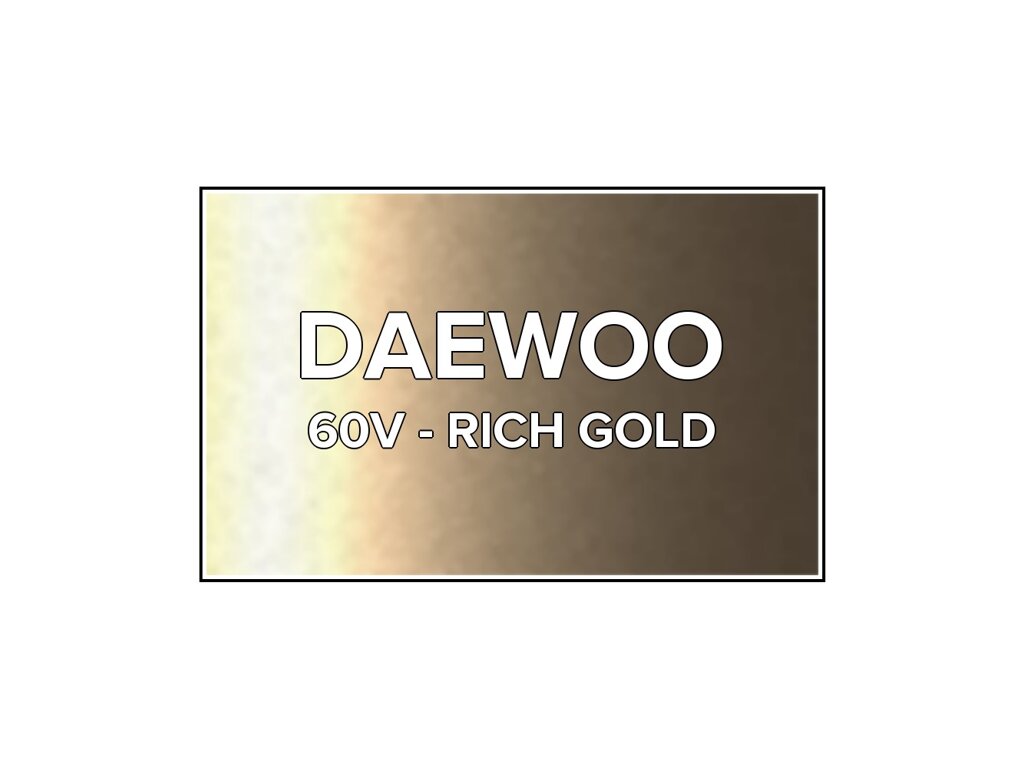 Přečíst článekŽlutá metalíza Daewoo 60V Rich Gold ve spreji o objemu 400ml. Barva RICH GOLD přesně odpovídá autolaku 60V, používaného na vozech Daewoo v letech 2001-2005. Barva na všechny povrchy, snadná aplikace, 100% krytí.
