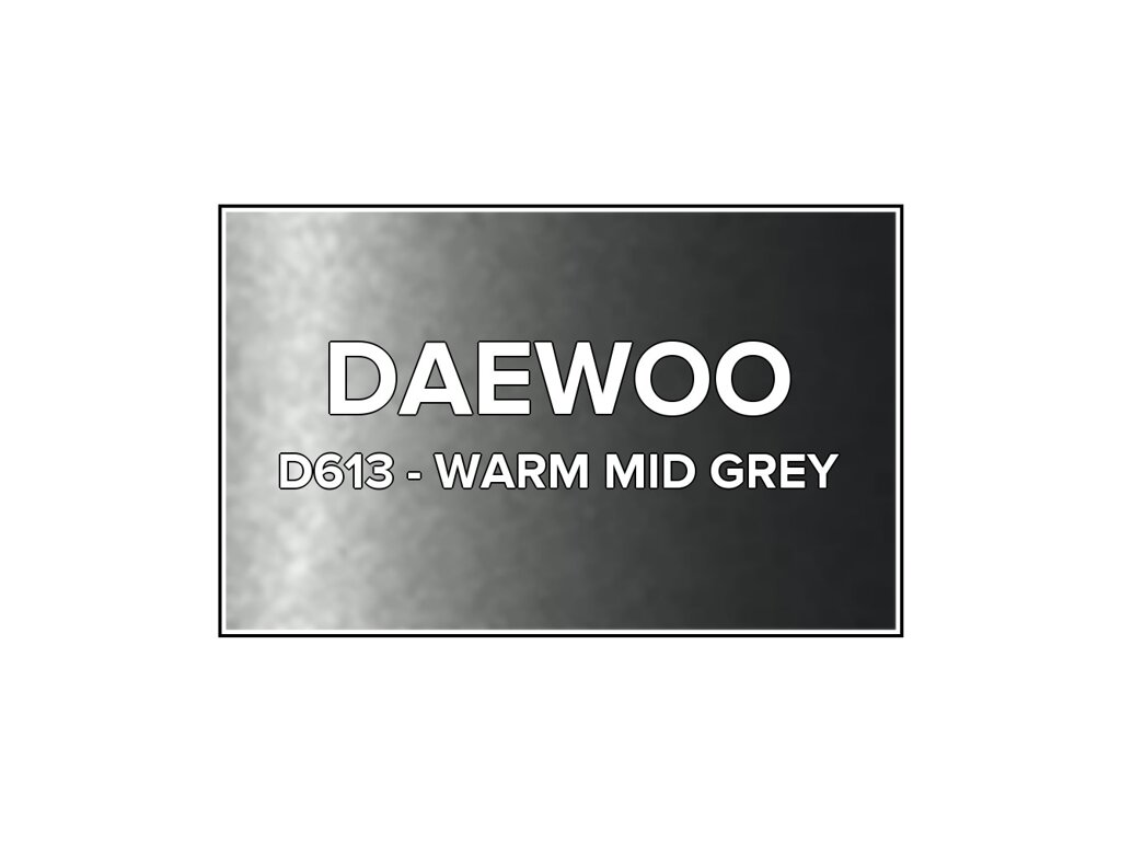Přečíst článekŠedá metalíza Daewoo D613 Warm Mid Grey ve spreji o objemu 400ml. Barva WARM MID GREY přesně odpovídá autolaku D613, používaného na vozech Daewoo v letech 2002-2005. Barva na všechny povrchy, snadná aplikace, 100% krytí.