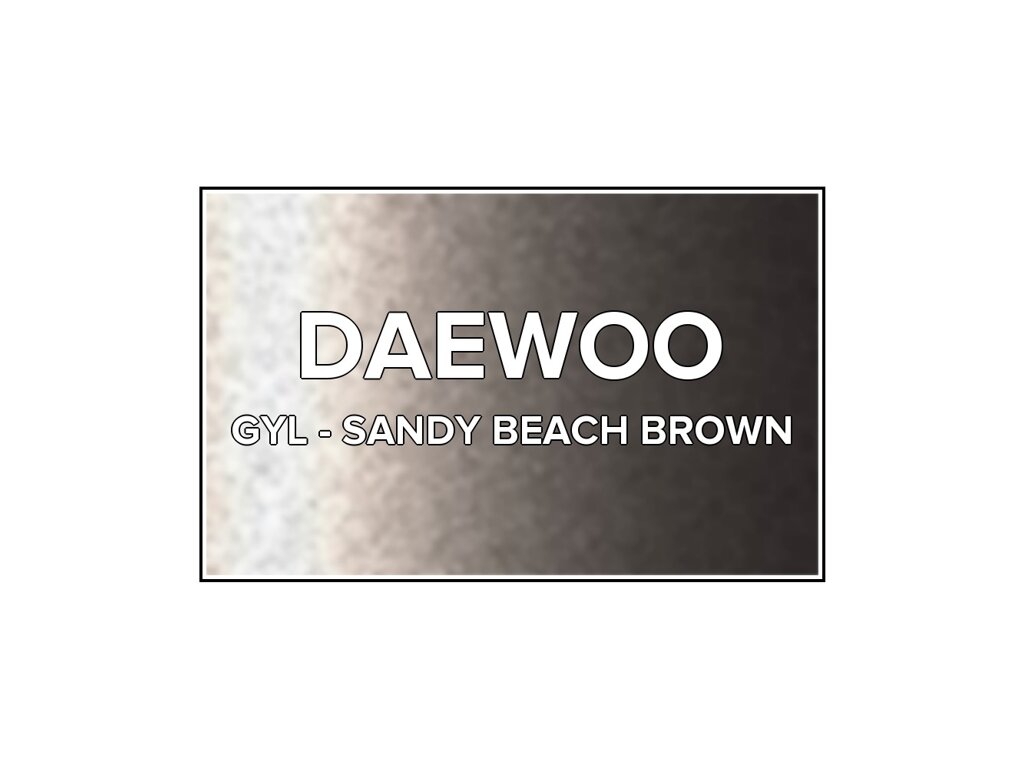 Přečíst článekHnědá metalíza Daewoo GYL Sandy Beach Brown ve spreji o objemu 400ml. Barva SANDY BEACH BROWN přesně odpovídá autolaku GYL, používaného na vozech Daewoo v roce 2012. Barva na všechny povrchy, snadná aplikace, 100% krytí.