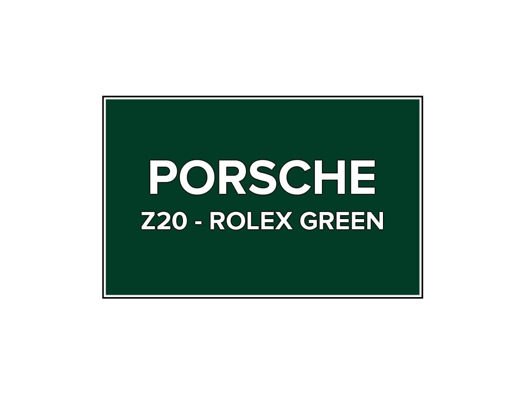 Přečíst článekZelená barva Porsche Z20 Rolex Green ve spreji o objemu 400ml. Barva ROLEX GREEN přesně odpovídá autolaku Z20, používaného na vozech Porsche v roce 2006. Barva na všechny povrchy, snadná aplikace, 100% krytí.