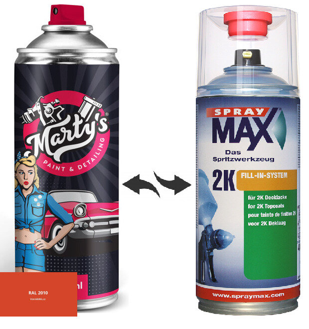 Namíchaný odstín laku je dodáván ve speciálním spreji, ve kterém jsou až do prvního použití dvě složky umístěny samostatně - proto se této barvě také říká dvousložková, nebo zkratkou 2K.