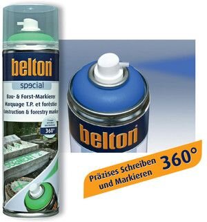 Značkovací sprej Belton nabízíme v různých barevných variantách: Neonově ČERVENÁ, Neonově ŽLUTÁ, Neonově MODRÁ a Signální ZELENÁ.