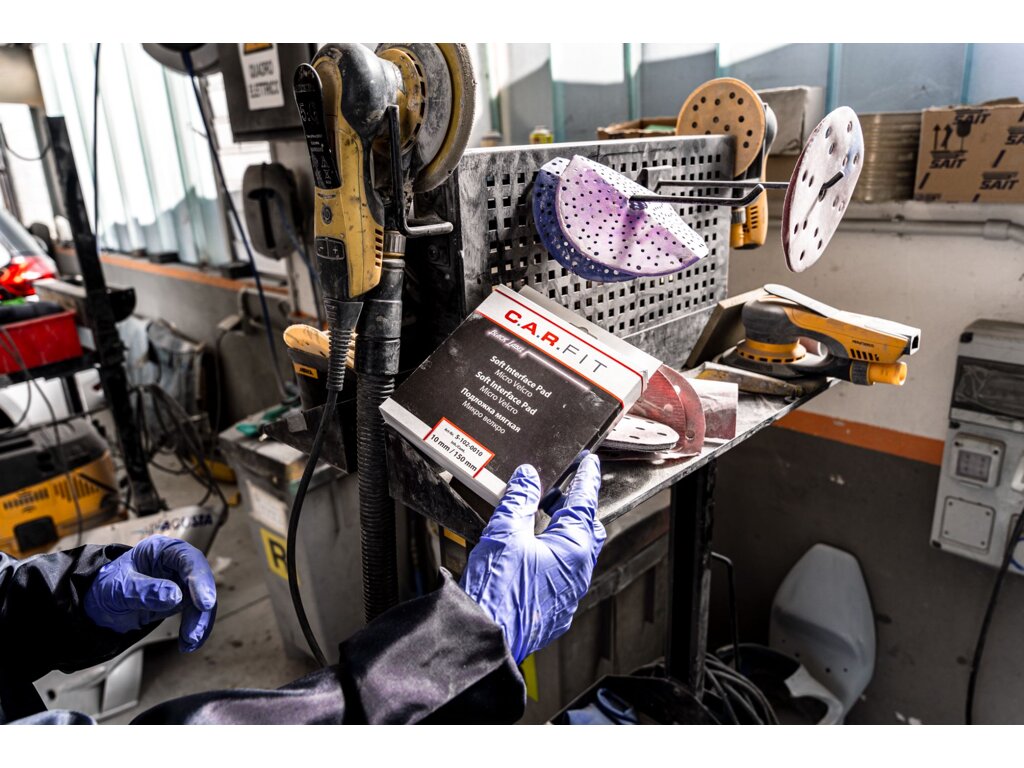 Speciální konverzní měkká vrstva, pomocí které z jakéhokoliv běžného brusného kotouče měkký. Díky jemným Micro Velcro suchým zipům na uchycení brusiva nehrozí poškrábání laku. Samotná neslouží k broušení.