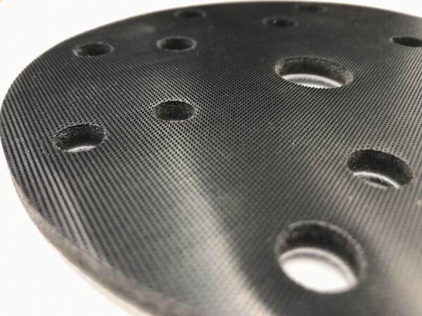 Nabízíme dvě tloušťky - úzký 5mm a tlustý 10mm. Obě dvě mezipodložky jsou 150mm veliké, takže vhodné pro klasické brusné kotouče. Odsávání probíhá přes 15 děr, které pomáhají odvádět nejen prach, ale i teplo a zajišťují tak větší šetrnost celého procesu broušení.