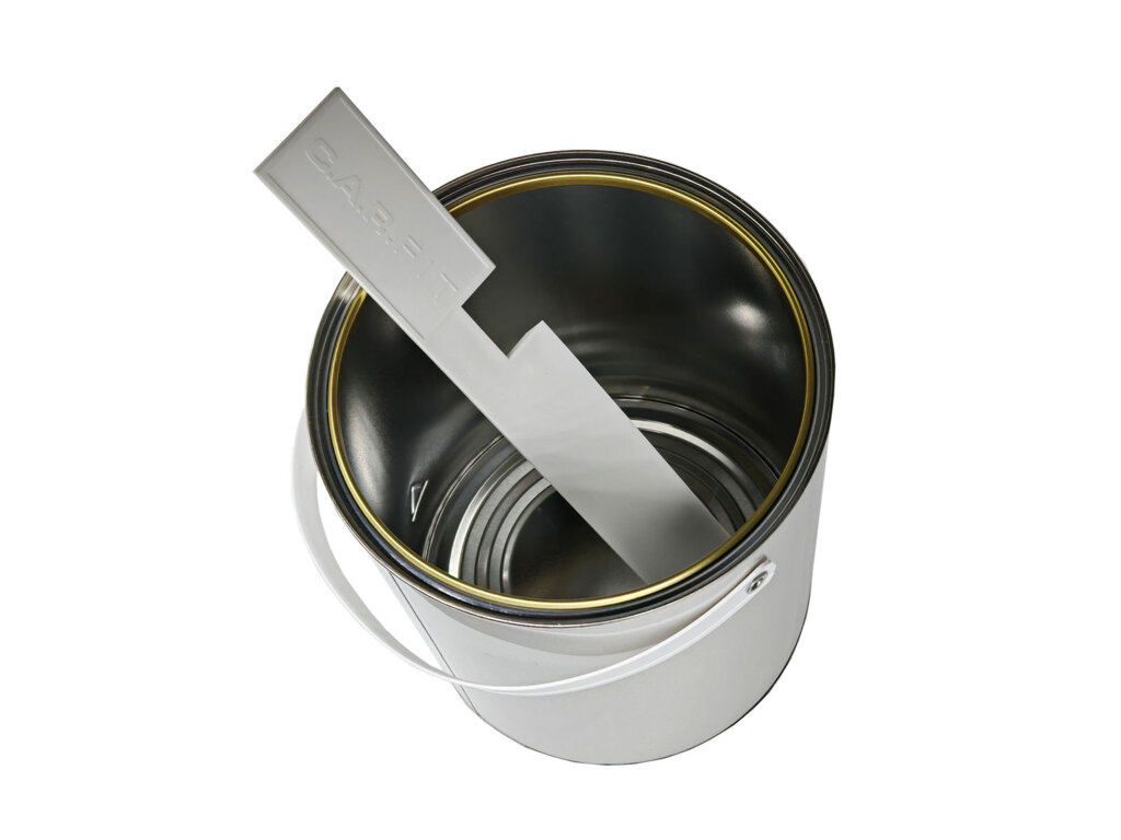 Speciální plastová špachtle, která má zploštělé hrany a speciální výkus zapadající přímo do plechovky, je ideálním pomocník pro důkladné promíchání barvy v plechovce.