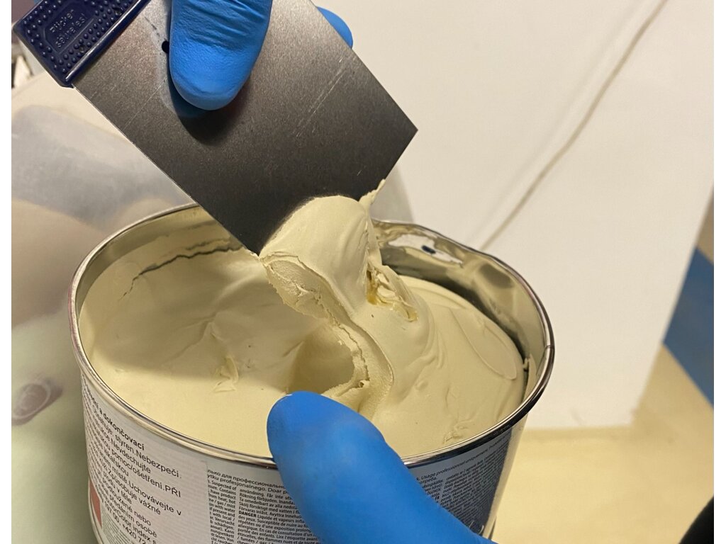 I přesto, že je cena tmelu nižší, kvalita je výborná. Je bezpórový a snadno se nanáší, perfektně se dá tvarovat bez stékání na svislých aplikacích, což umožňuje tmelení například dveří bez problémů. Výborně se brousí za sucha jak ručně, tak i strojně.