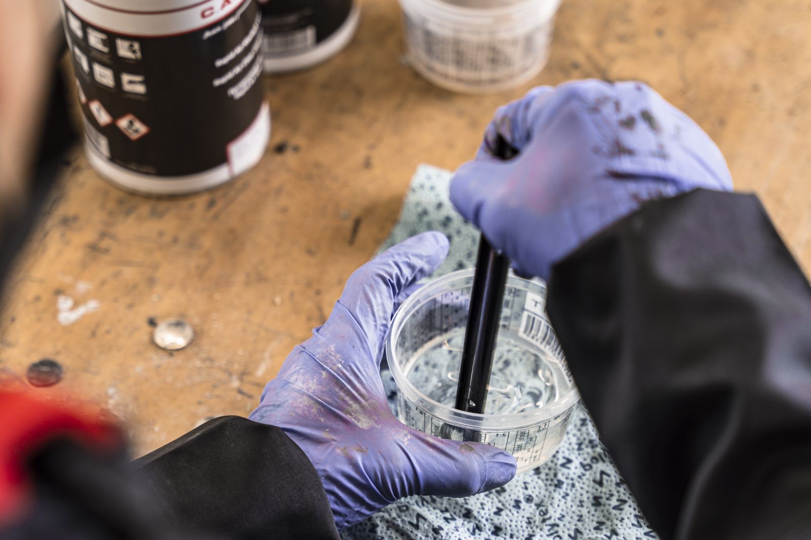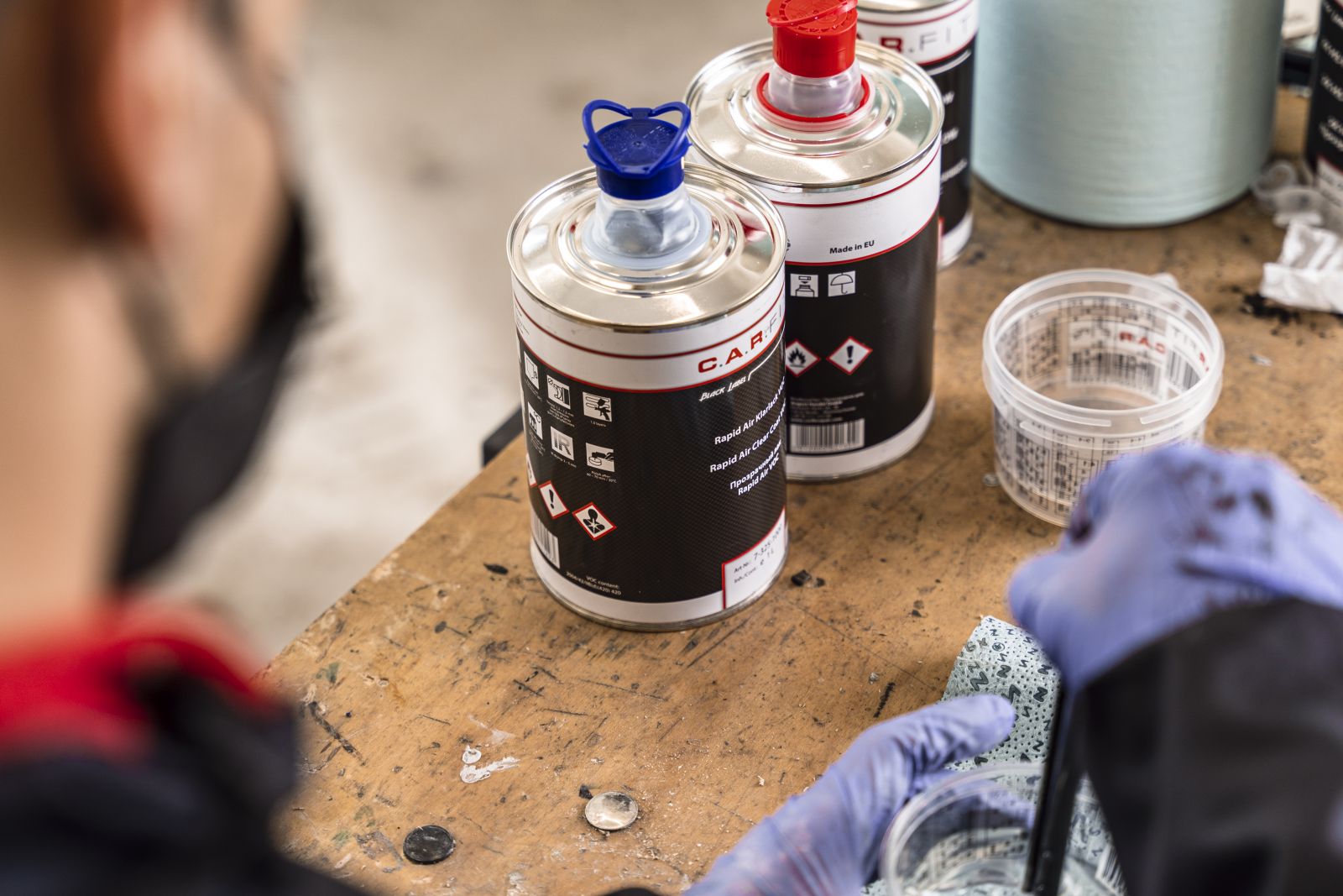 Ismét tartsa be a 3×20-as szabályt - a környezet, a festett rész és az anyag hőmérsékletének azonos szinten kell lennie(ideális esetben 20°C körül). A befúvólevegő nyomásának helyes beállítása és tisztítása szintén fontos része ennek. Jellemzően alacsony nyomású festést végeznek, így a pisztolyon a nyomás körülbelül 2 bar lesz. Óvakodjon egy gyakori festési hibától: fontos megjegyezni, hogy 1 méter légtömlőnként 0,1 bar nyomás veszik el. Tehát például, ha 10 m-es tömlővel fest, akkor a kompresszortól a pisztolyig tartó úton 1 bar nyomásveszteség keletkezik. Ezért általában közvetlenül a pisztoly alatt mérje a nyomást, ideális esetben egy kis nyomásmérővel és egy szabályozóval.