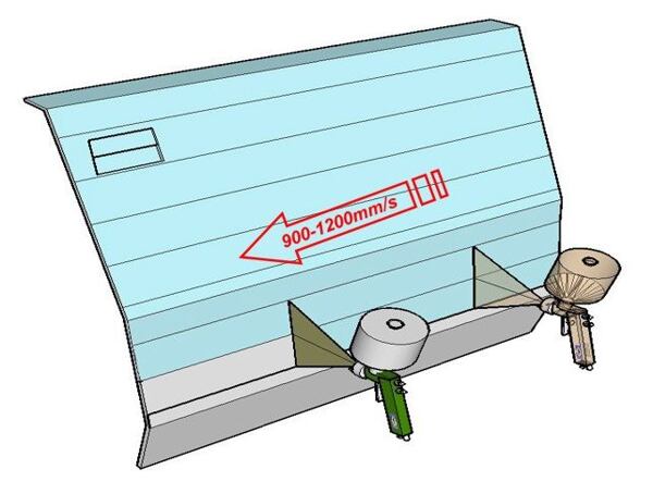 Rychlost, kterou by měly být jednotlivé části lakovány se pohybuje mezi 900 a 1200mm/s. Tato hodnota je měřitelná pouze u strojního lakování roboty.