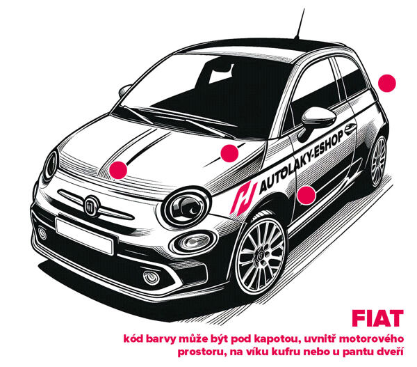 U vozů Fiat najdete štítek s kódem barvy pod kapotou, uvnitř motorového prostoru, na víku kufru nebo u pantu předních dveří.