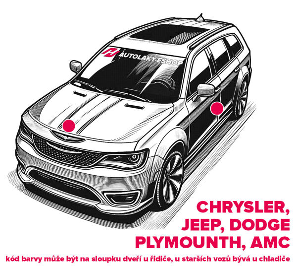 Potřebujete si opravit barvu na svém voze značky Chrysler, Jeep, Dodge, Plymounth nebo AMC a nevíte, jak zjistit přesný kód barvy vašeho vozu? Poradíme vám, kde a jak můžete kód barvy na automobilech z koncernu Chrysler najít.