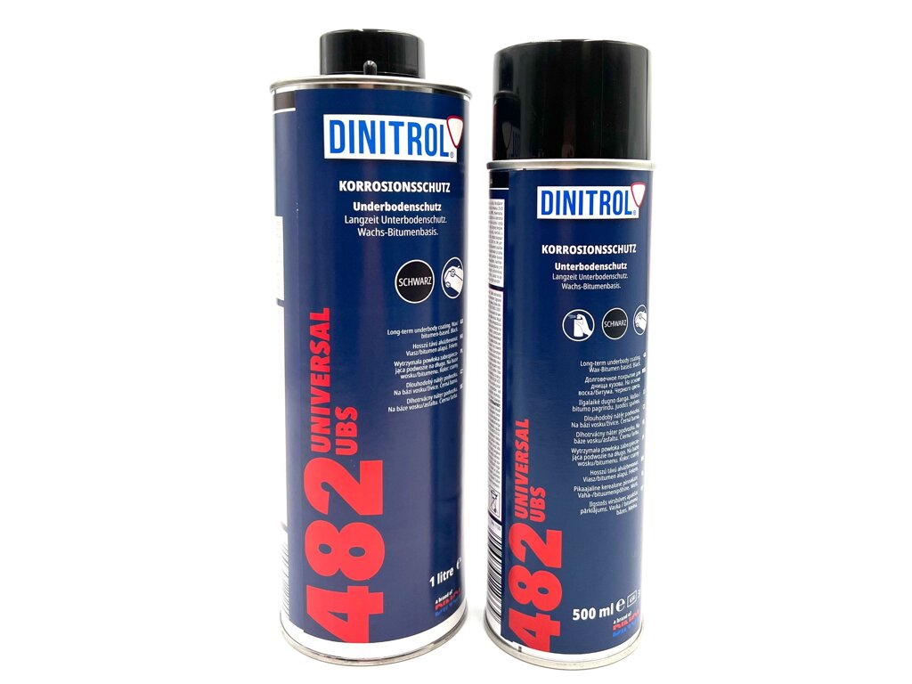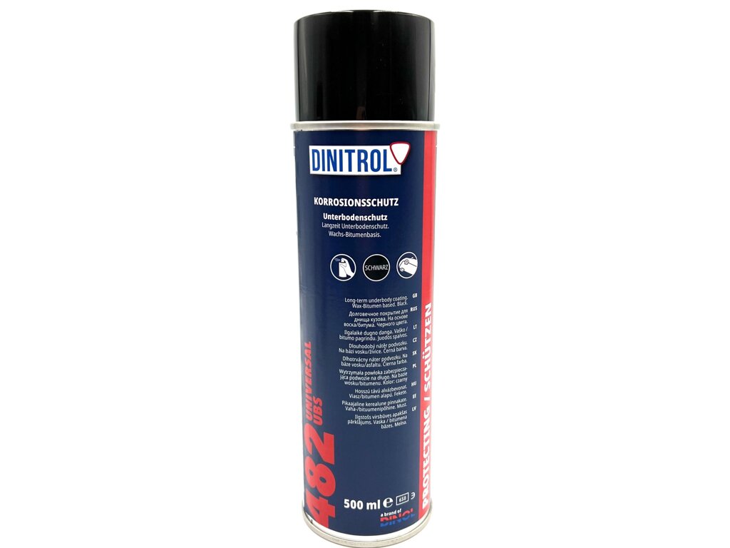 Dinitrol 482 je černý přípravek k ochraně spodků na bázi bitumenu a vosku. Je zvláště vhodný pro ošetření podvozků vozidel v prvovýrobě, autoopravárenství a také i u kutilů - domácí použití. Vytváří silný trvale pružný film a ověřený vynikající materiál s maximálním výkonem. Je NEPŘELAKOVATELNÝ.