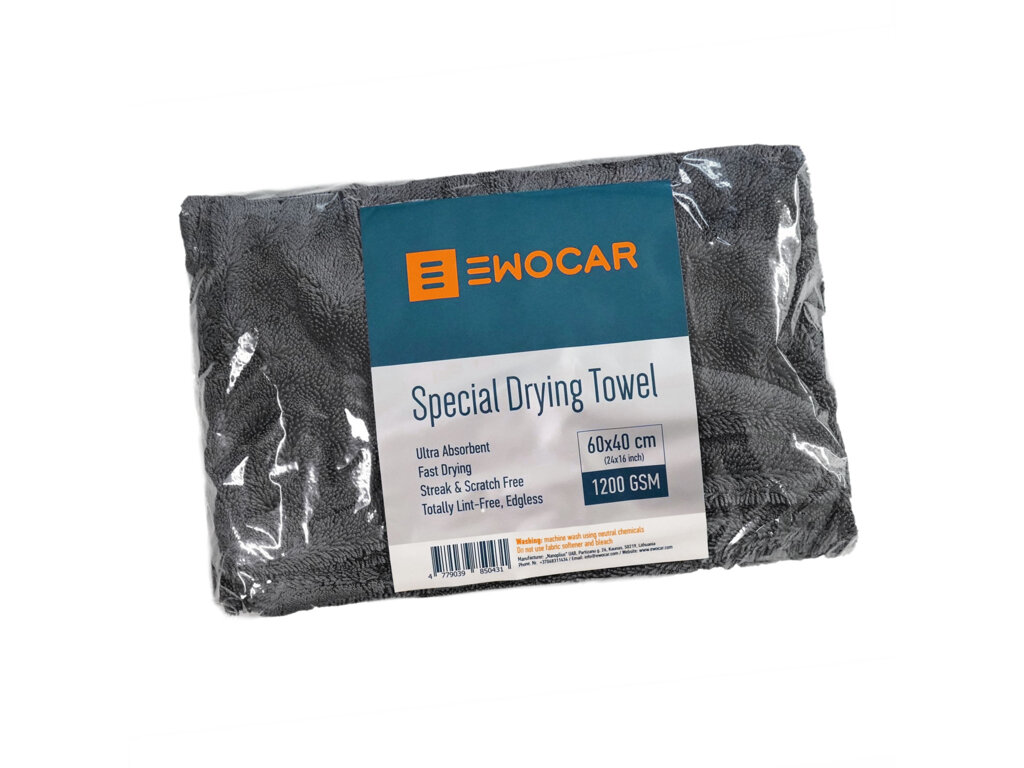 Super kvalitní ručník Ewocar vám díky své mimořádně vysoké gramáži 1200g/m2 pomůže snadno a bez námahy odstranit z umytého vozu veškerou přebytečnou vodu.