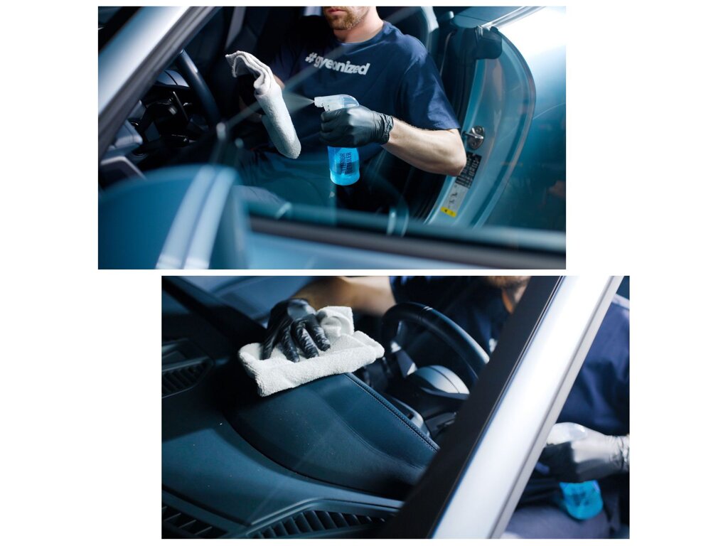 Gyeon Q2M Interior Detailer je bezpečný pro kůži, plasty, Alcantaru, textil, sklo a všechny typy vnitřního obložení. Na vyčištěných površích zanechává matný, nelepivý povrch.