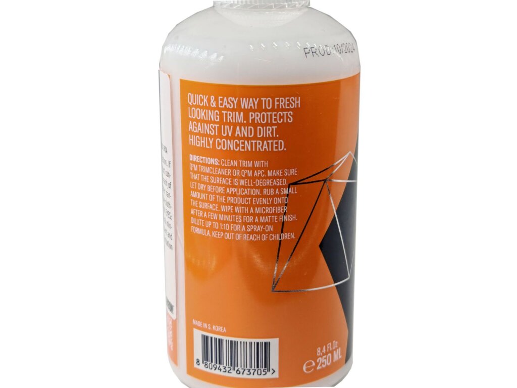 Po nanesení vytvoří Q²M Preserve na plastech velmi neutrální matný povrch. Tato vrstva přitom žádným způsobem neovlivňuje vzhled a dojem ani té nejměkčí vinylové lišty. Jednoduše potáhne lištu, aby její vzhled zůstal stejný, jako když jste ji koupili.