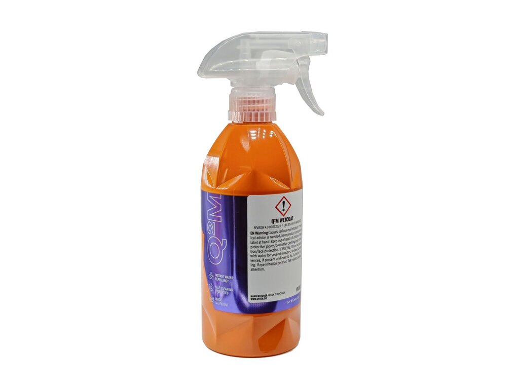 Čistič a dekontaminátor Q2M Wet Coat je dostupný ve dvou velikostech balení: menší má objem 500 ml a větší 1000 ml.