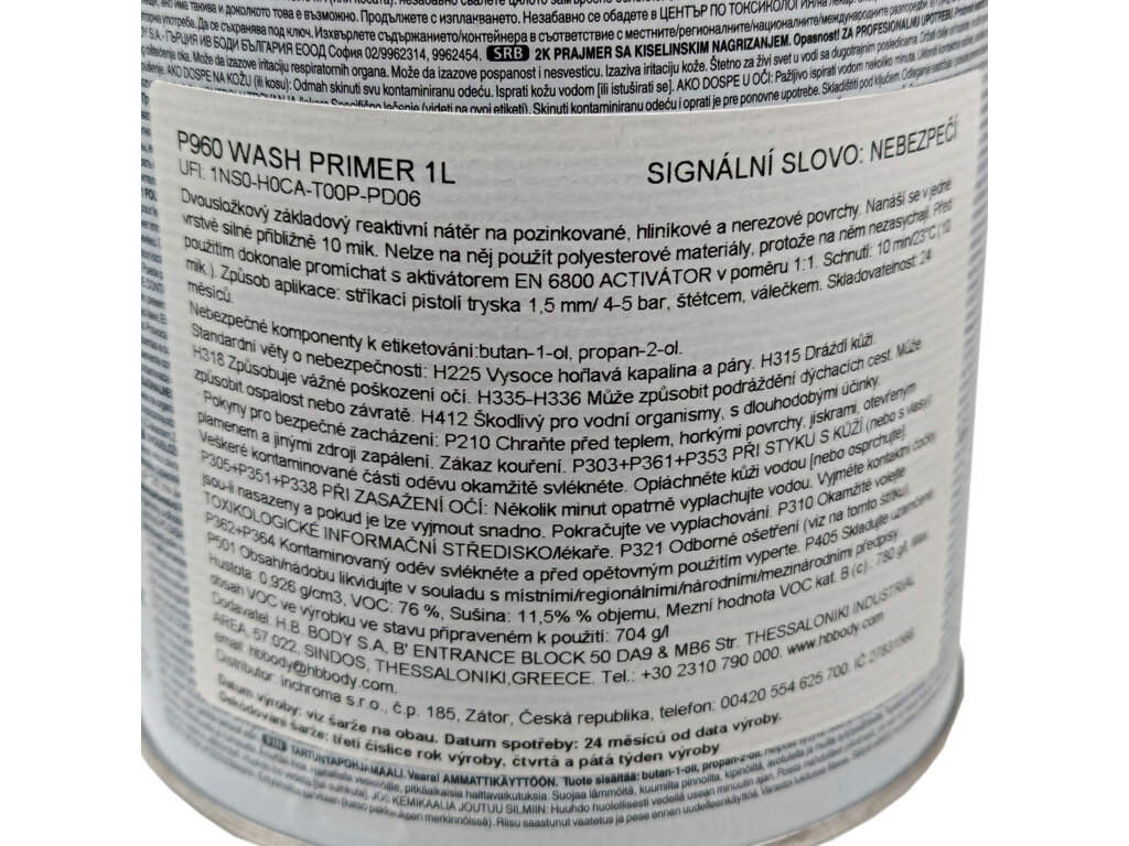 Pozor: Wash primer P960 je dvousložkový! Před jeho použitím je potřeba primer smíchat v poměru 1:1 s aktivátorem H731.