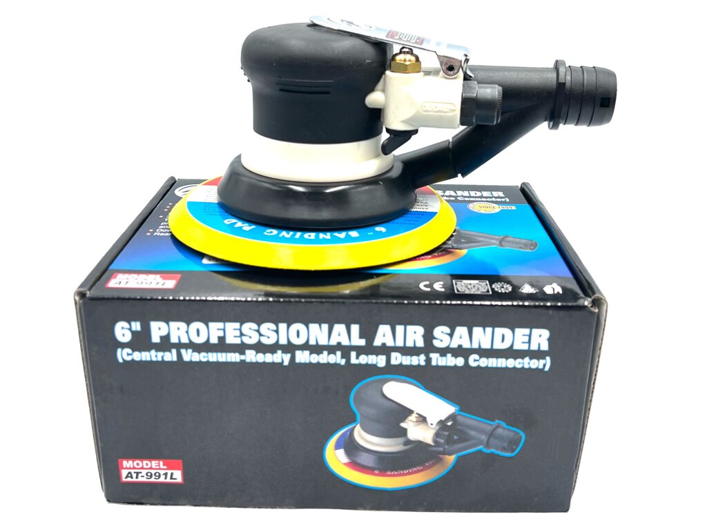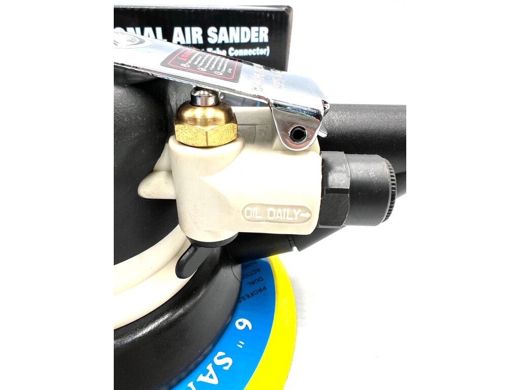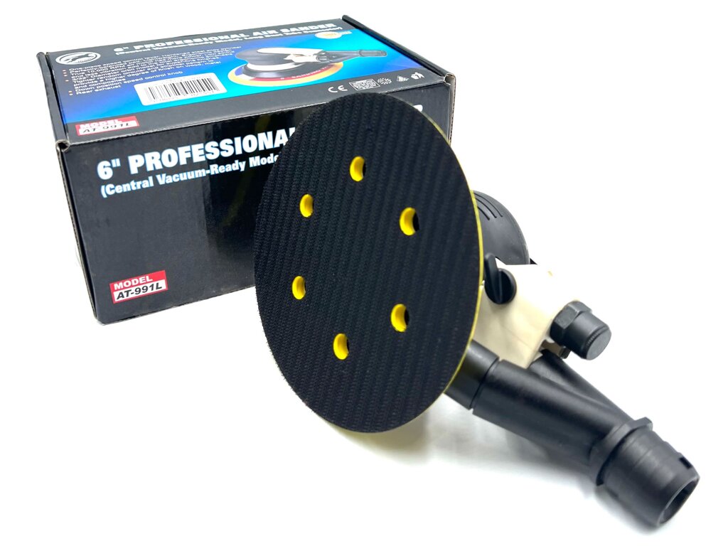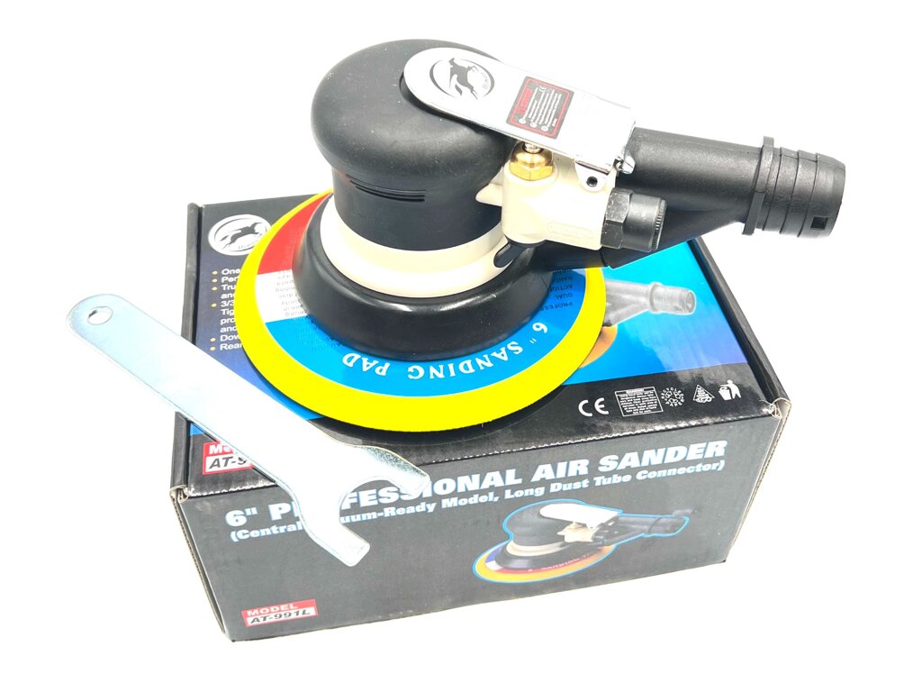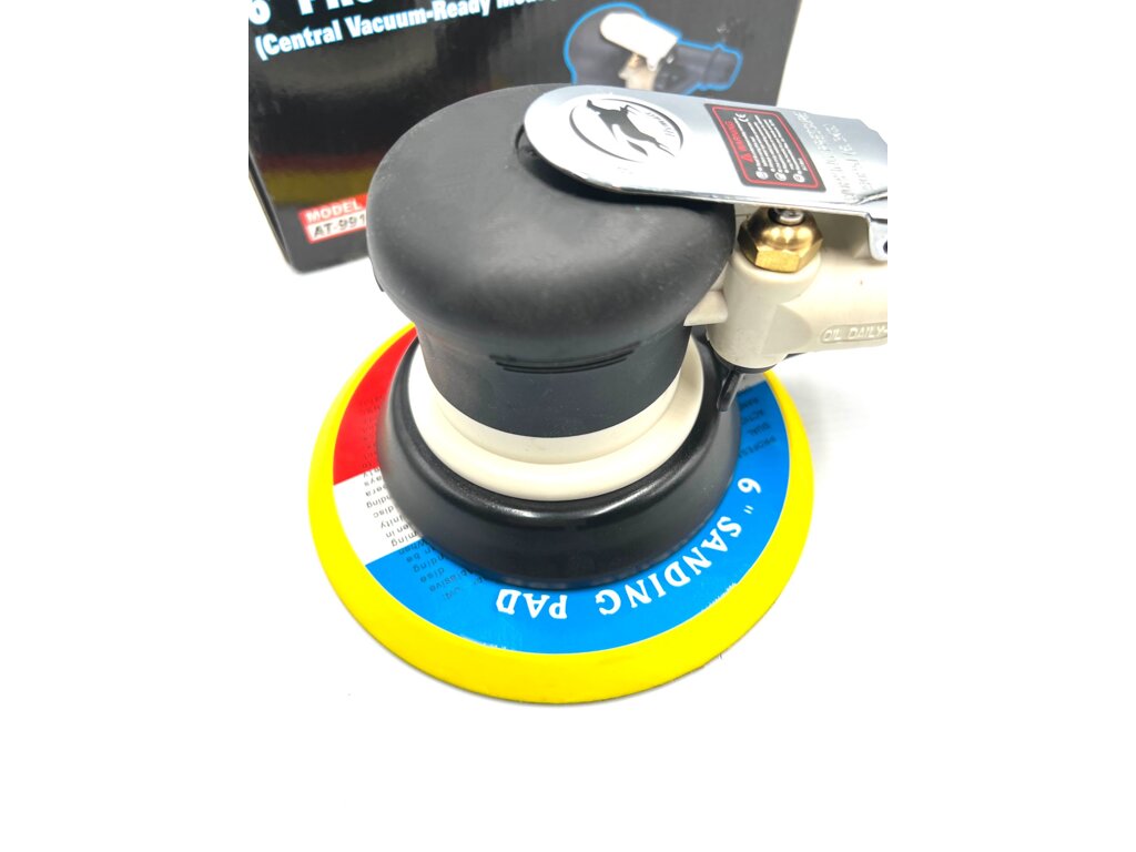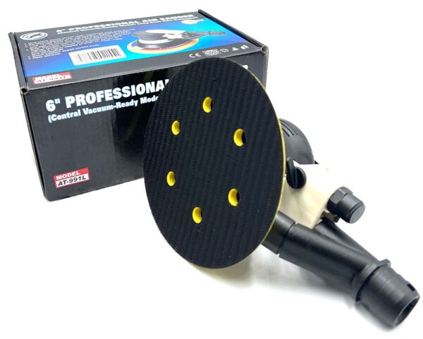 Tato bruska Hymair je opatřena unašečem se suchým zipem o průměru 150mm (vhodná pro všechny brusné kotouče 152mm) a 6 odsávacími otvory. Odsávání je možné přes hadici do sáčku (nejsou obsahem balení), nebo v případě potřeby lze napojit na externí odsávací systém.