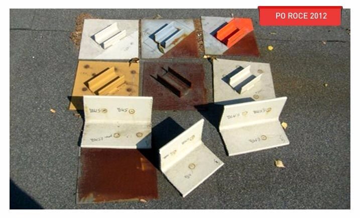 Vzorky byly natřeny jednou vrstvou odrezovače Ikorol a po 1 hodině na ně byly aplikovány zmíněné nátěrové systémy. Po vytvrzení (21 dní) byly vzorky vystaveny povětrnostním vlivům po dobu 14 až 48 měsíců.