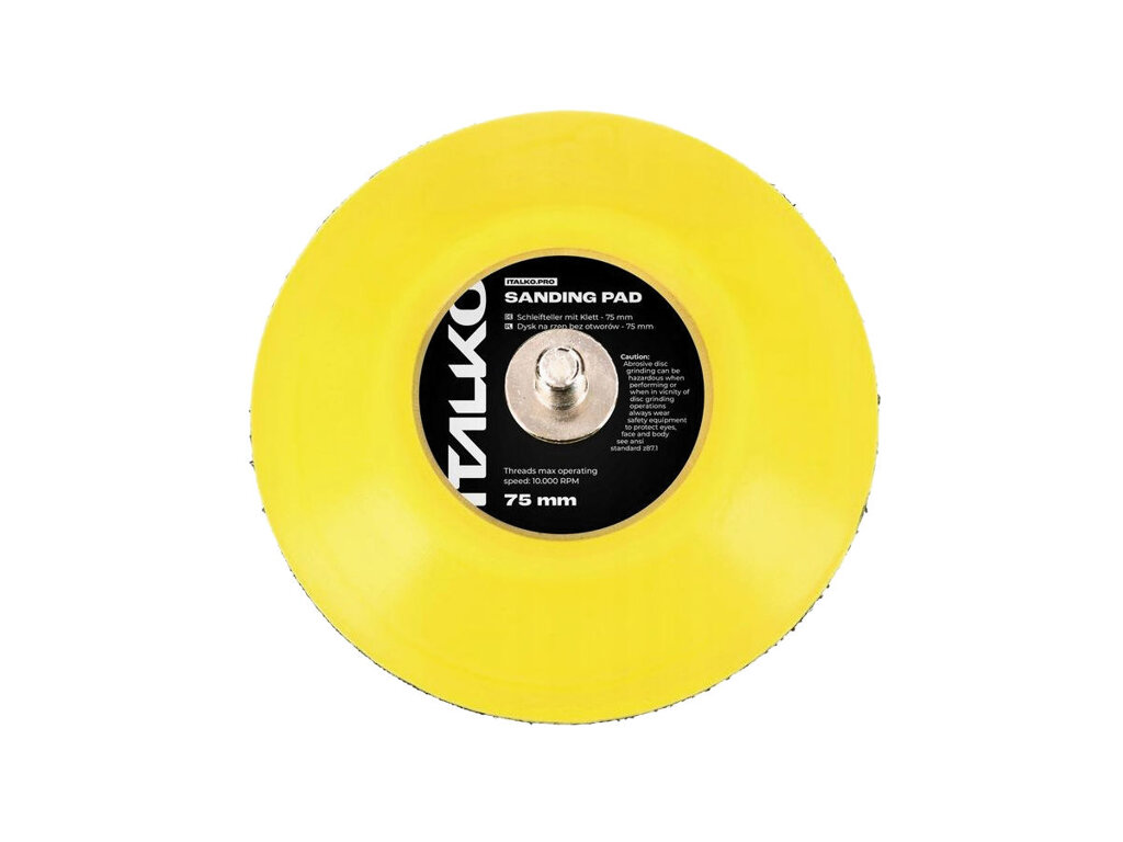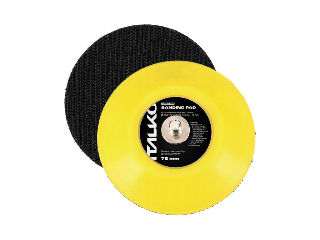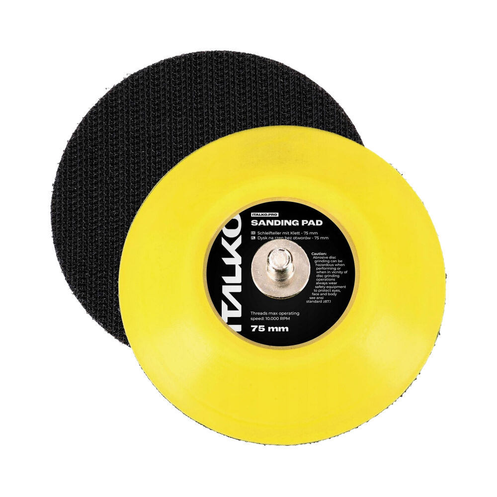 Univerzální podložný talíř o průměru 75 mm střední tvrdosti, se závitem M6. Ideální pro broušení i leštění detailů.