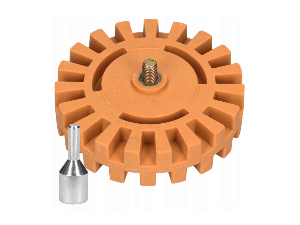 Roztočený gumový kotouč nepoškrábe lak auta, ale přitom šetrně odstraní všechno přilepené a pouhou rukou neodstranitelné.