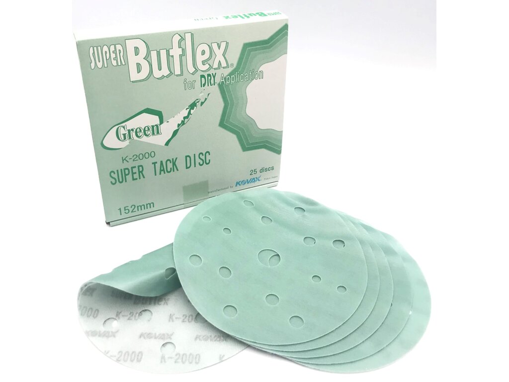 Inovativní latexový, mimořádně pružný kotouč, který disponuje jedinečnou strukturou zrn a vysokou jemností což brusný kotouč Kovax Buflex předurčuje pro použití především na jemné, velmi jemné a závěrečné broušení před aplikací báze, leštění či jako alternativa pro matování.