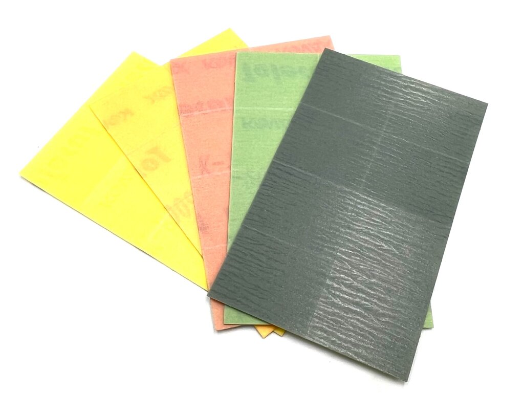 Každý brusný plát má 8 samolepících obdélníčků o velikosti 29x35mm. V závislosti na rozsahu vady se začíná vybranou hrubostí: K800, K1200, K1500, K2000 a K3000.
