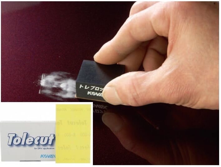 Brusné výseky Kovax ToleCut mají dlouhou životnost a lepí se na brusné bloky Kovax Toleblock. Každý brusný plát má 8 samolepících obdélníčků o velikosti 29x35mm. V závislosti na rozsahu vady se začíná vybranou hrubostí: K800, K1200, K1500, K2000 a K3000.