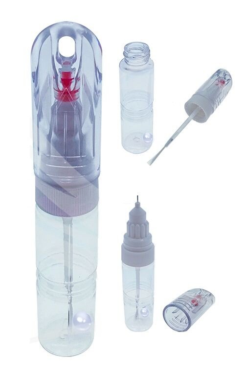pro drobné opravy s rozmíchávací kuličkou. Odolná rozpouštědlům. Je opatřená retušovacím hrotem umístěným pod průhledným víčkem. Lahvička je díky tomu ideální jako retušovací tužka pro opravu miniaturních poškození, jako jsou typické tečky od odletujících kamínků.