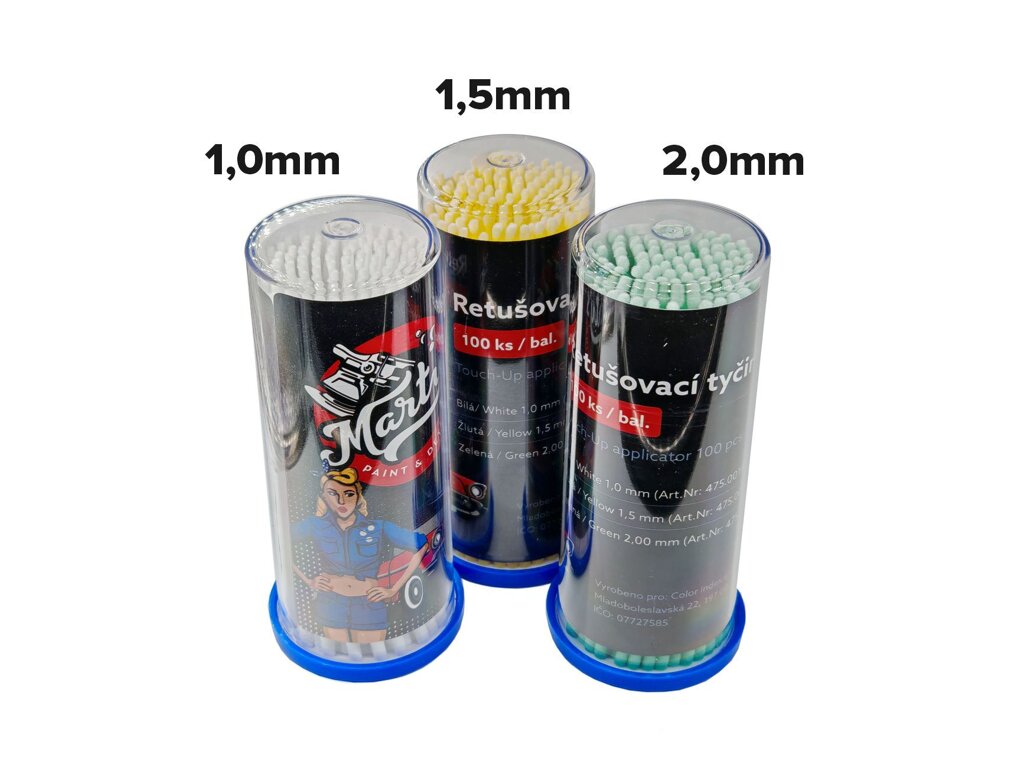 Odolná plastová tyčinka je opatřena bezprašnou a bez vlákennou hlavou, díky které dokážete velice přesně a citlivě zaretušovat i ty nejdrobnější vady v laku, jako jsou typické tečky a důlky od odletujících kamínků, drobné škrábance v laku nebo další poškození.