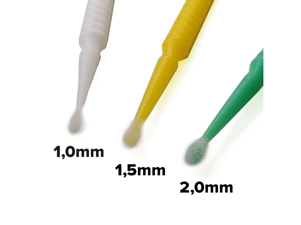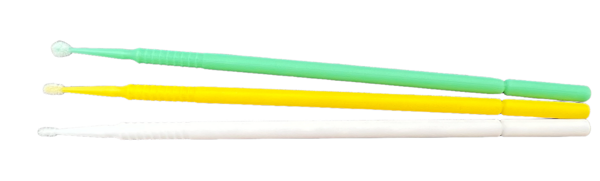 Retušovací tyčinky nabízíme ve třech velikostech retušovacích hlav, a to tuto žlutou 1,5mm, bílou 1,0mm nebo největší zelenou 2,0mm.