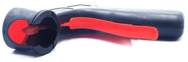 Rukojeť je charakteristická dvěma barvami - černým tělem a výraznou červenou spouští, najdete jí tedy vždy i v tmavých zásuvkách nebo boxech na nářadí.
