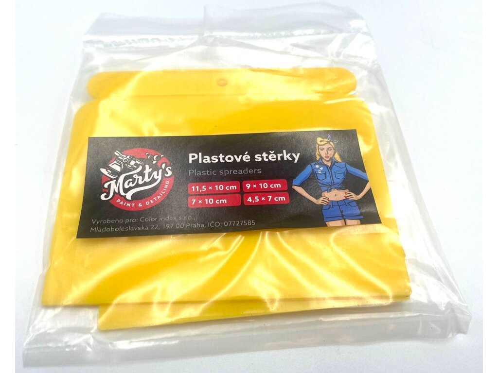 Pomůcka pro nanášení tmelů v praktickém balení, které obsahuje 4ks stěrek různých rozměrů. Jsou ideální k nanášení a modelování polyesterových tmelů a další práce vyžadující neagresivní plastový povrch mechanicky šetrný k ostatním materiálům. Nestane se vám, tak jako u ocelových stěrek, že byste hranou poškrábali opravovaný povrch